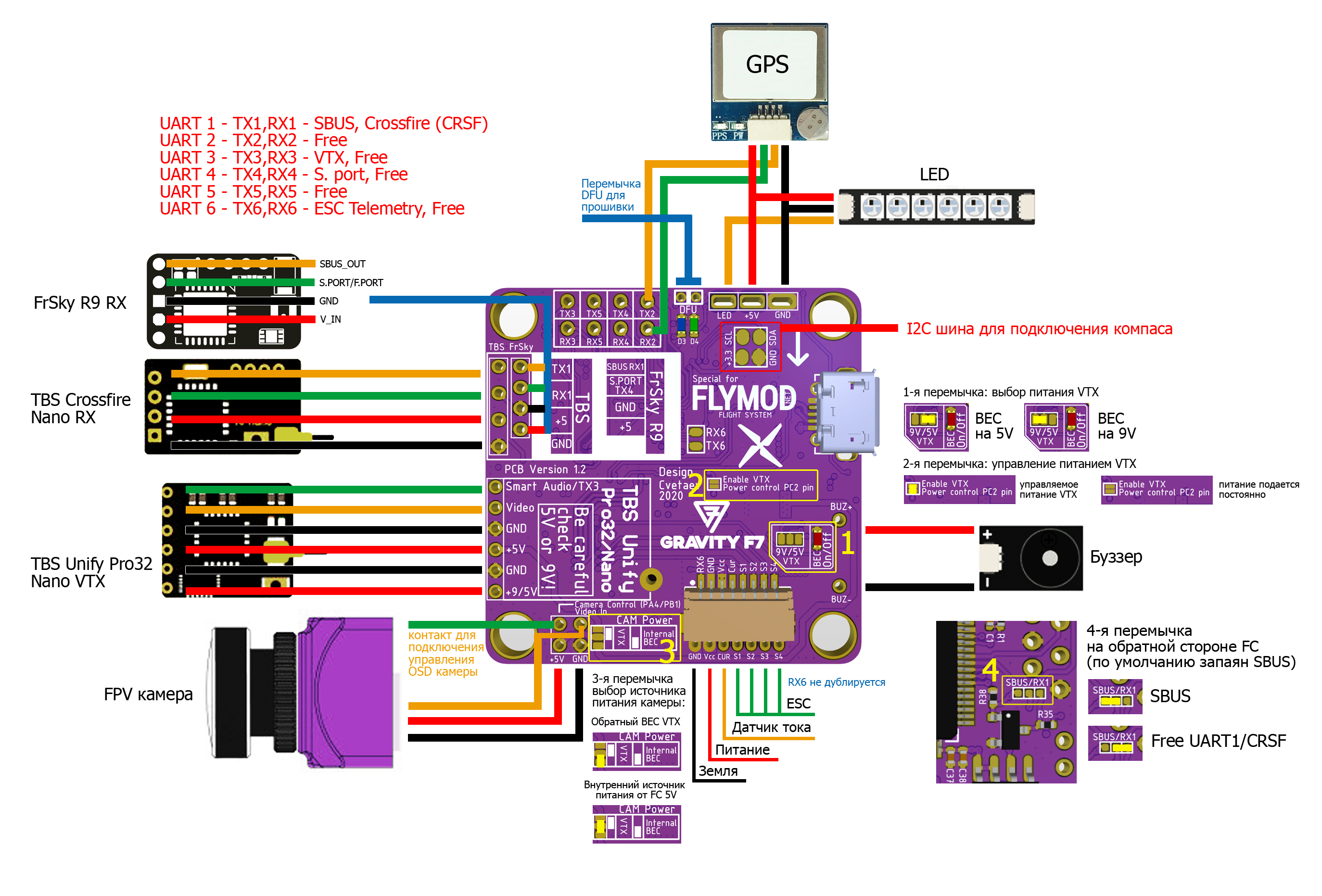 Read moreFlymod Gravity F7 flight controller, designed in Ukraine for the needs of Ukrainian FPV pilots. The controller is perfectly compatible with video transmitters and receivers from TBS, which allows for a clean and beautiful installation. Designed for FPV racing quadcopters and other similar drones.