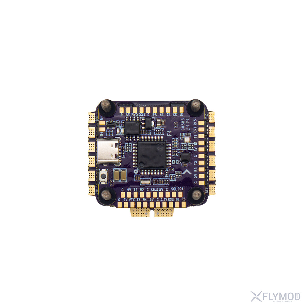 FLYCOLOR BLS 04 F4 65A 3-6S stack combines a 4-in-1 ESC and flight controller. The dual-layer tower design with dampers between them reduces vibration. The EFM8BB21-basedESC operates up to 50MHz and supports BLHeli-S/Bluejay with 65A DC and 70A peak. The STM32F405 controller with MPU-6500 gyroscope and BMP388 barometer provides stabilization and altitude control. Built-in 3.3V/5V/9VBECs power the receiver, video transmitter, camera, LEDs, and more. SBUS, CRSF and SPEKTRUM protocols are supported. The compact dimensions of 45*41*16.5mm and standard 30.5*30.5mm mounting make installation easy.