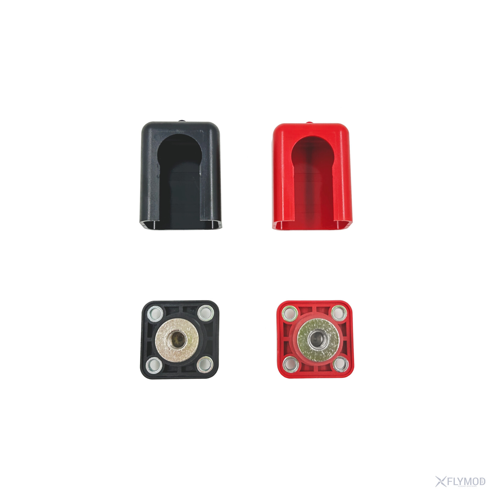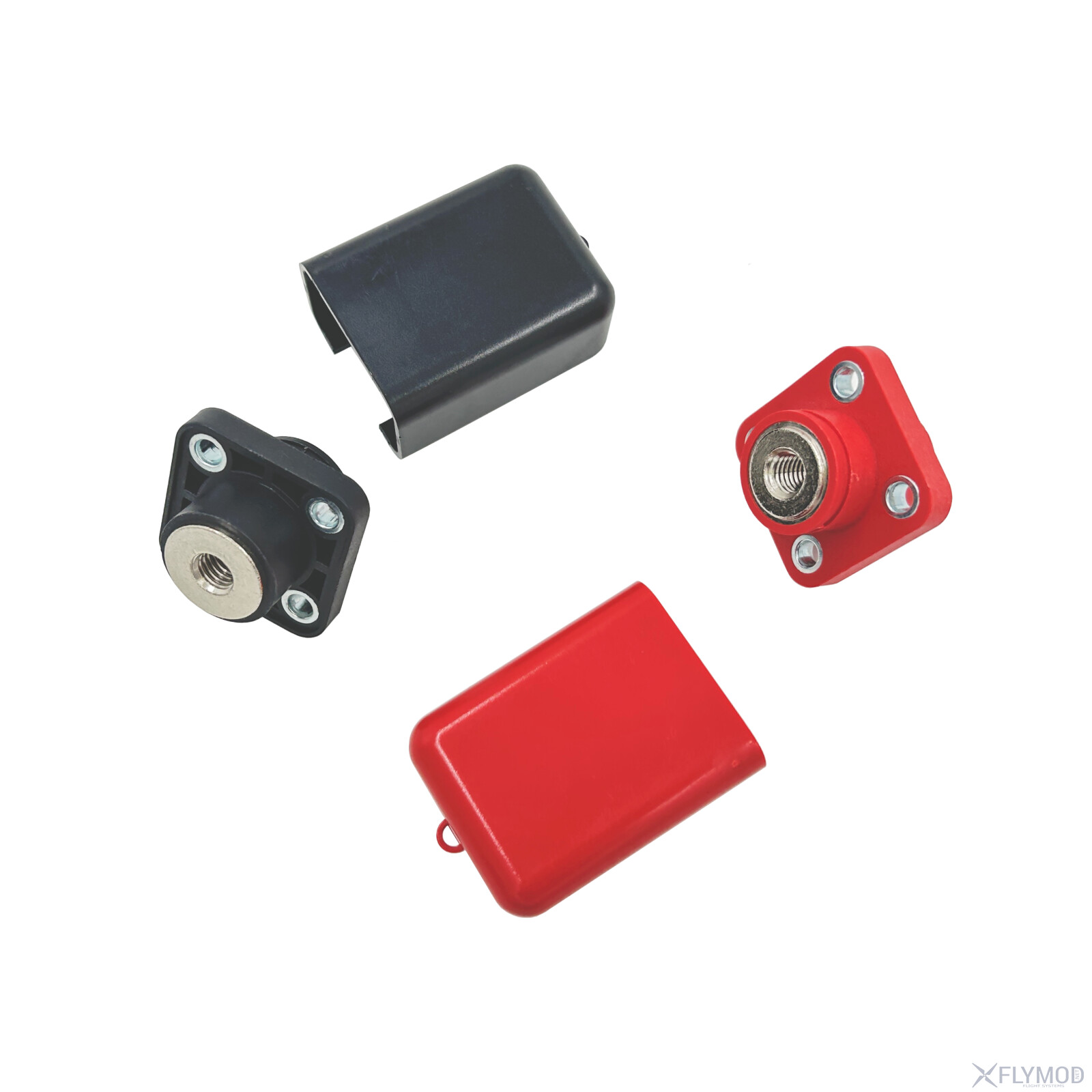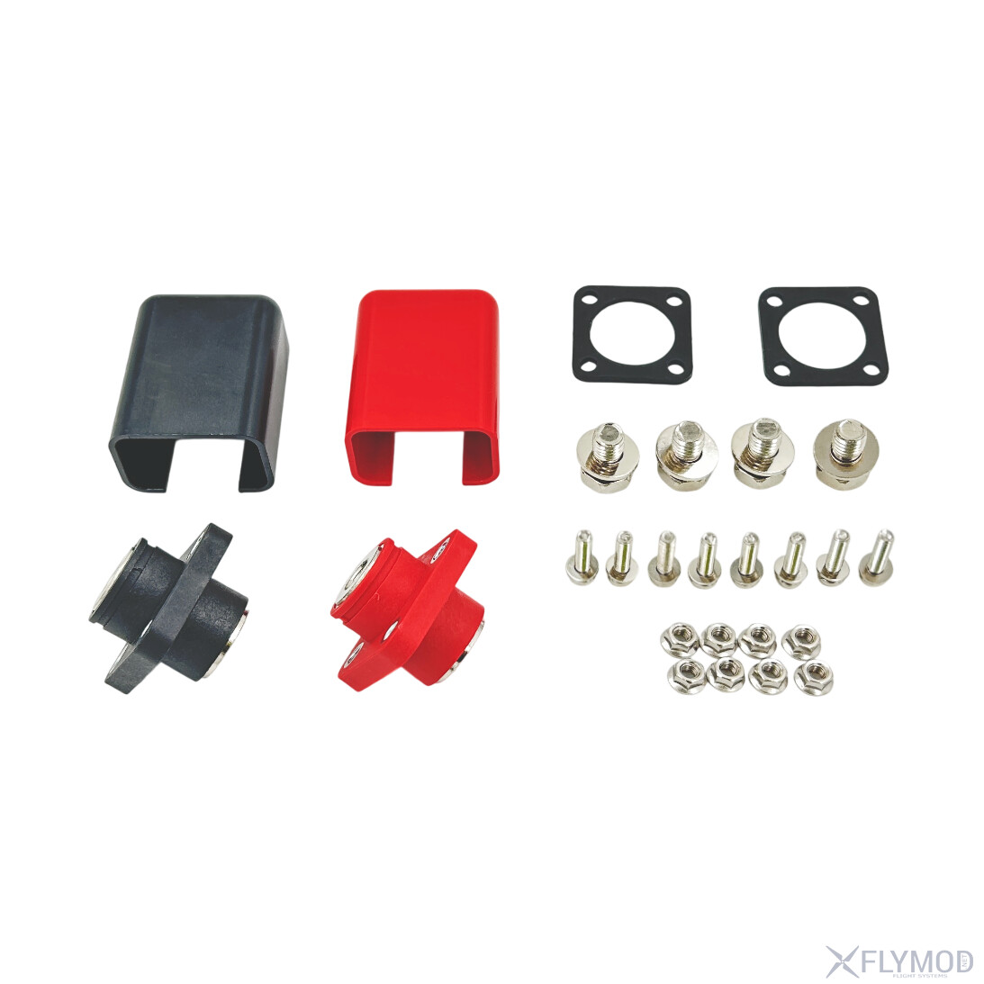 Terminal blocks 200A. The M8 screw-through housing terminal is designed for lithium-ion batteries. The connectors are made of pure copper and the housing is made of flame retardant PA66, which guarantees safety and efficiency. They support a rated current of 200A and a rated voltage of 500V. The set includes 2pcs, one black and one red.