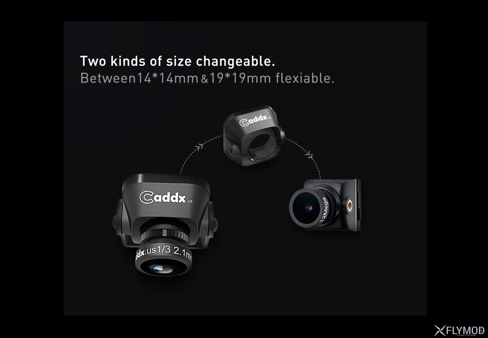 Компанія Caddx випустила нову камеру Kangaroo у форм-факторі Nano (14x14мм), в якій використовується сучасна CMOS матриця Sony Starvis. Камера має в комплекті змінну оболонку, яка дає змогу встановлювати її як мікрокамеру 19x19мм. Іншими ключовими характеристиками є супер низька затримка до 4 мс, нова лінза 12M 7G (залежить від обраної опції) і вага лише 3.5 грама.