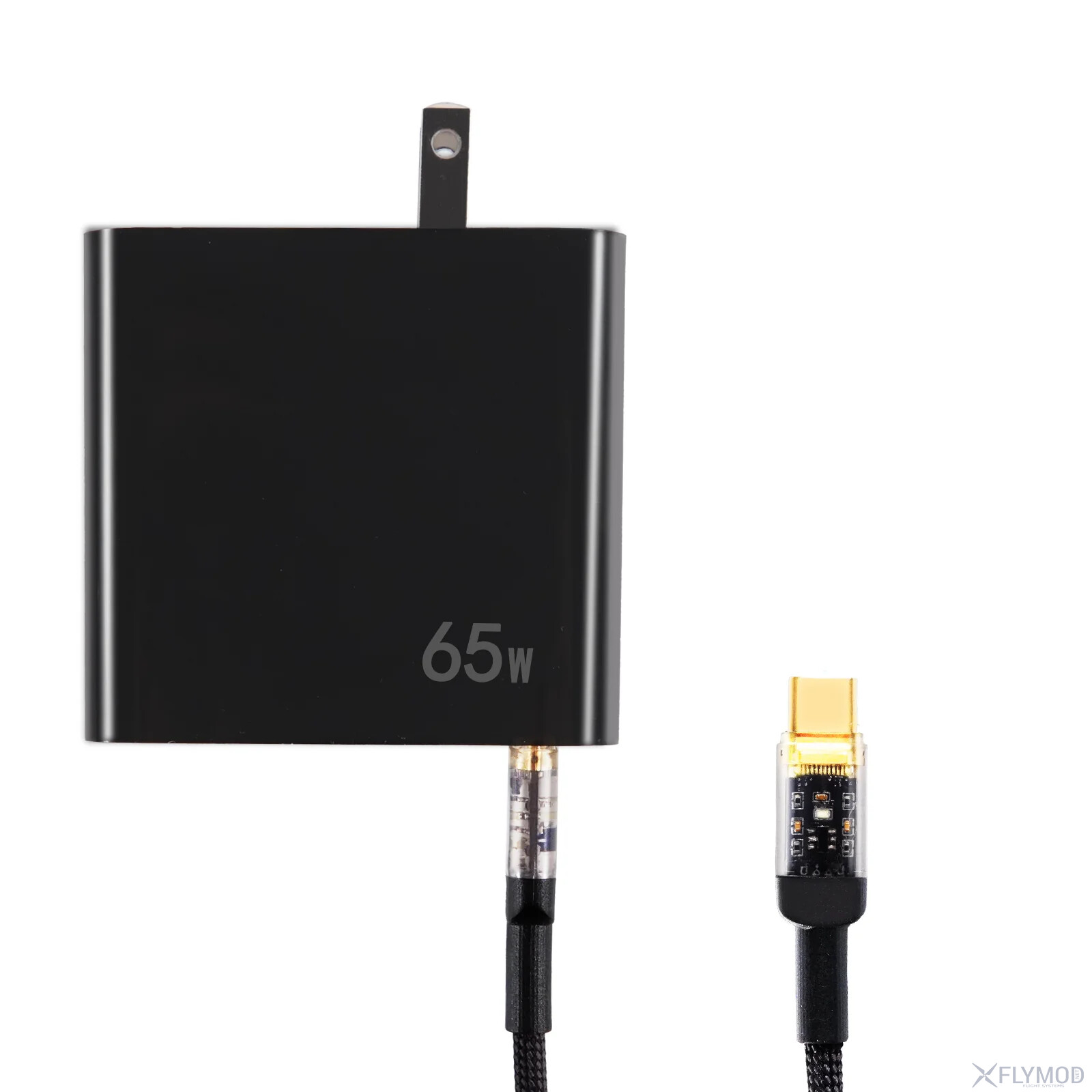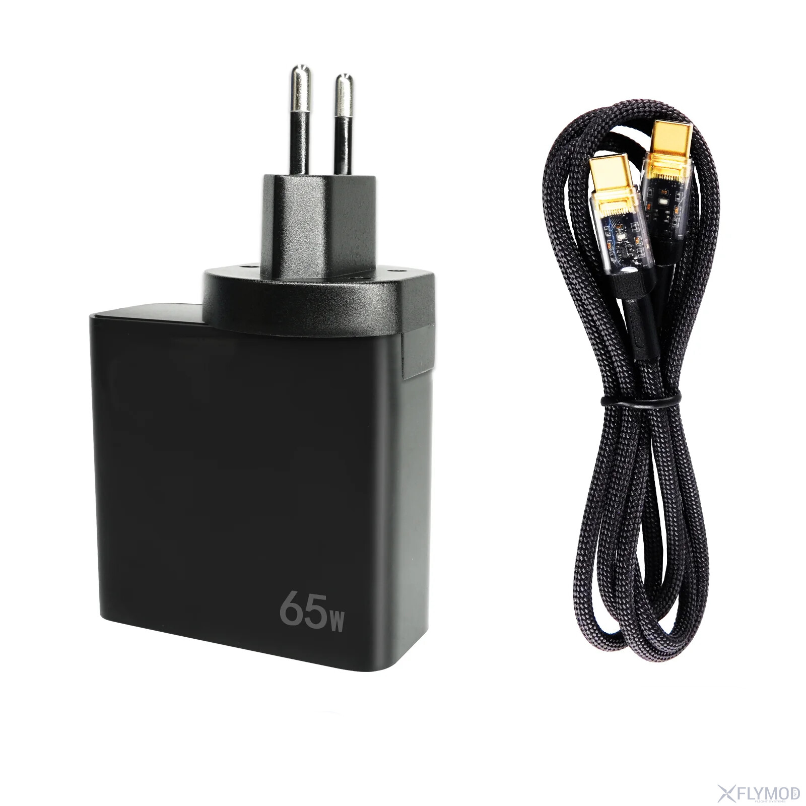 Пристрій швидкої зарядки PD65W забезпечує стабільне живлення та підтримує всі основні протоколи швидкої зарядки через порти USB-C і USB-A. Корпус із вогнетривкого ABS/PC гарантує безпечну роботу, а вихідна потужність до 65W дозволяє ефективно працювати навіть із паяльним обладнанням. У комплекті йде кабель Type-C+Type-C з нейлоновим плетінням, розрахований на струм до 5А та потужність передачі до 100W. Він забезпечує стабільну передачу даних і швидке заряджання пристроїв завдяки посиленій конструкції та алюмінієвим конекторами.