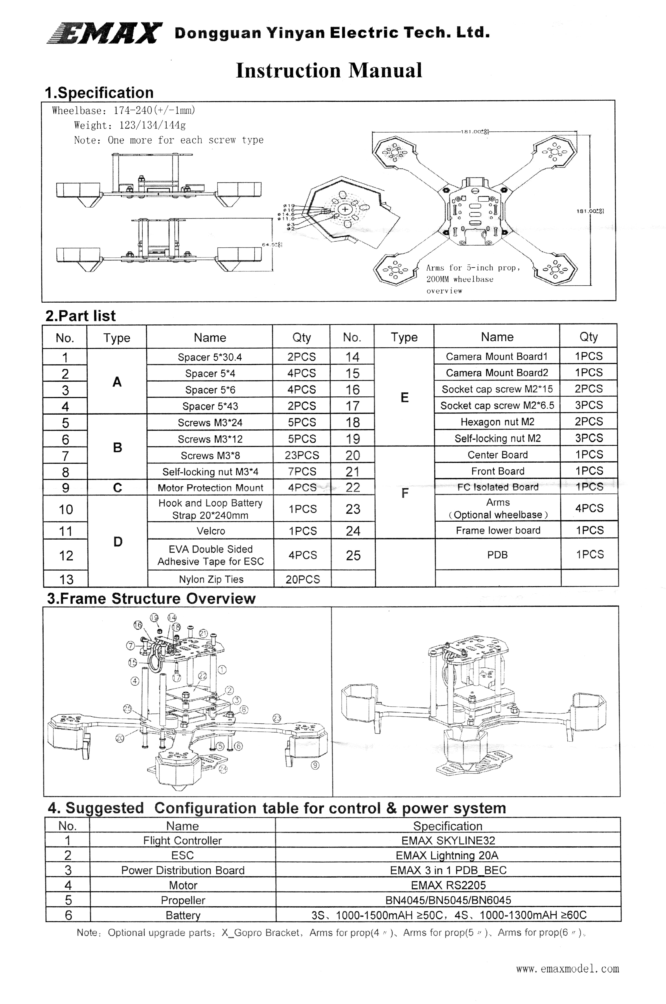 Вбудована в раму унікальна плата PDB, розроблена перегоновою командою EMAX для чистішого встановлення з меншою кількістю дротів, з вбудованими беками на 5 і 12V, XT60, світлодіодним RGB LED LED підсвічуванням, яке можна налаштувати, і буззером низької напруги.