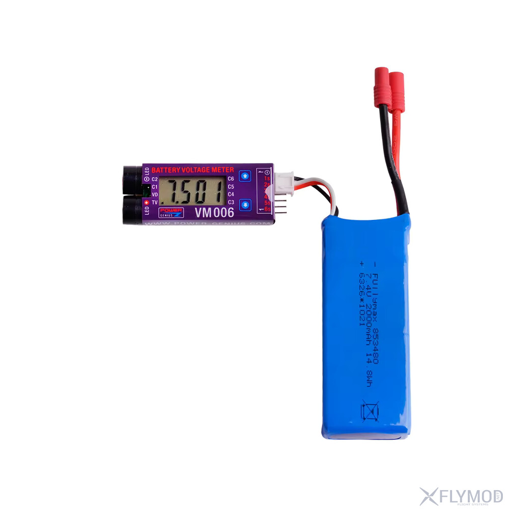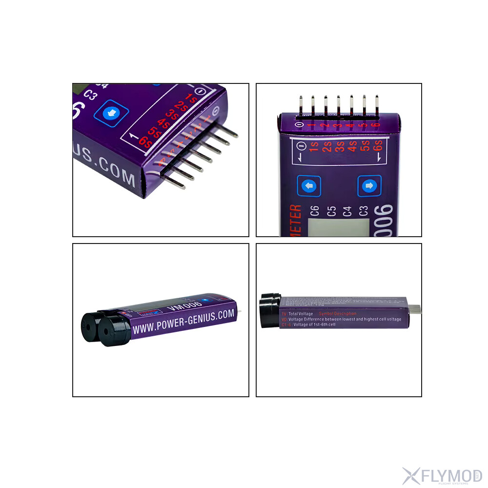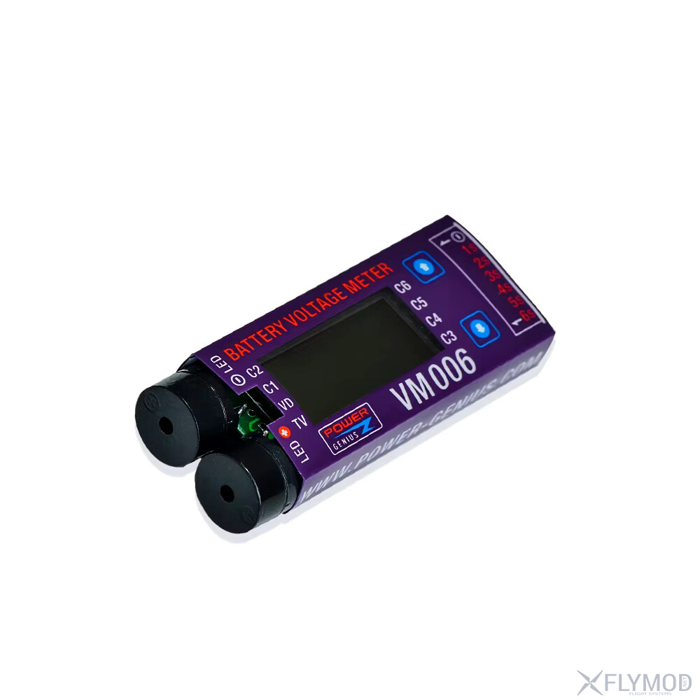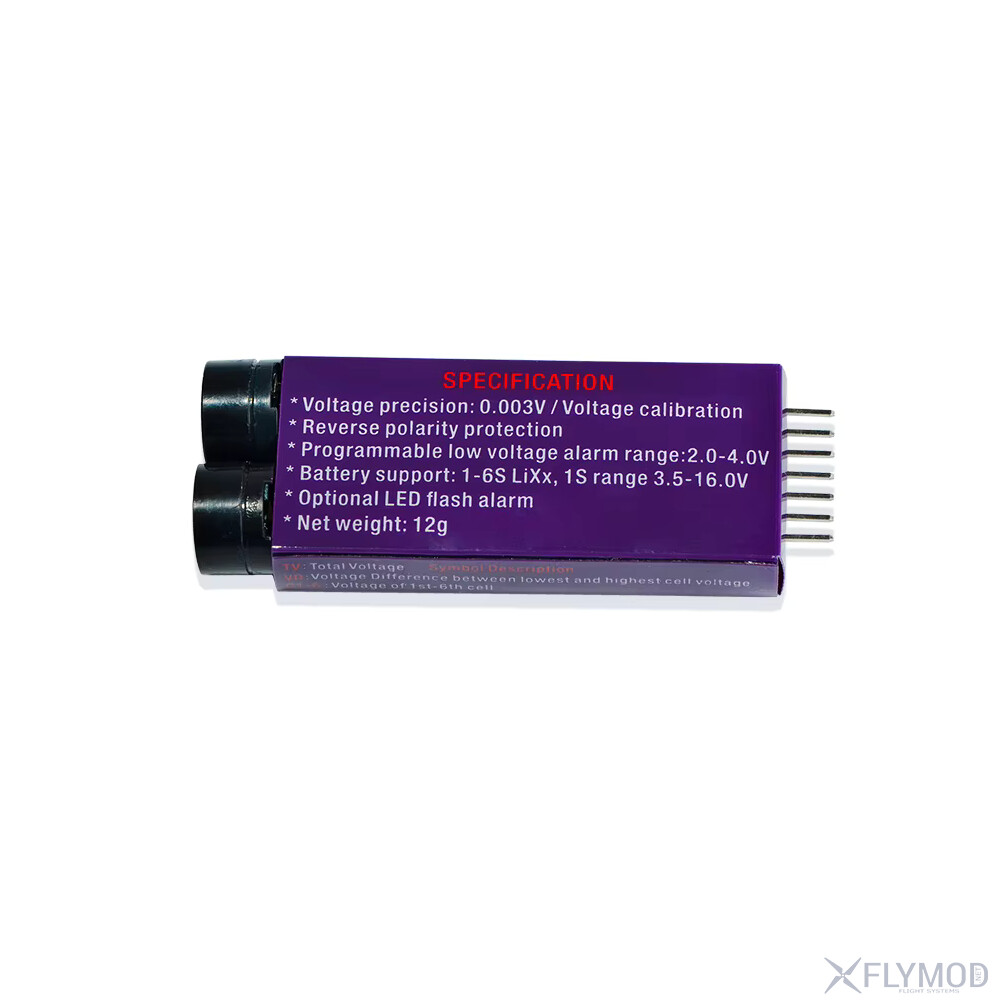 Сигналізатор низької напруги VM006 1-6S призначений для контролю LiPo-акумуляторів з робочою напругою 3-27V. Пристрій оснащений точним LCD-дисплеєм, що відображає загальну напругу, максимальне значення одного елемента та напругу кожного елемента окремо. Поріг спрацювання сигналізації налаштовується в діапазоні 2-4V з кроком 0.05V. Вбудований захист від зворотної полярності підвищує надійність. Гучний звуковий сигнал і світлодіодний індикатор забезпечують чітке сповіщення про низьку напругу. Низьке енергоспоживання та компактні розміри дозволяють використовувати сигналізатор у портативних системах.