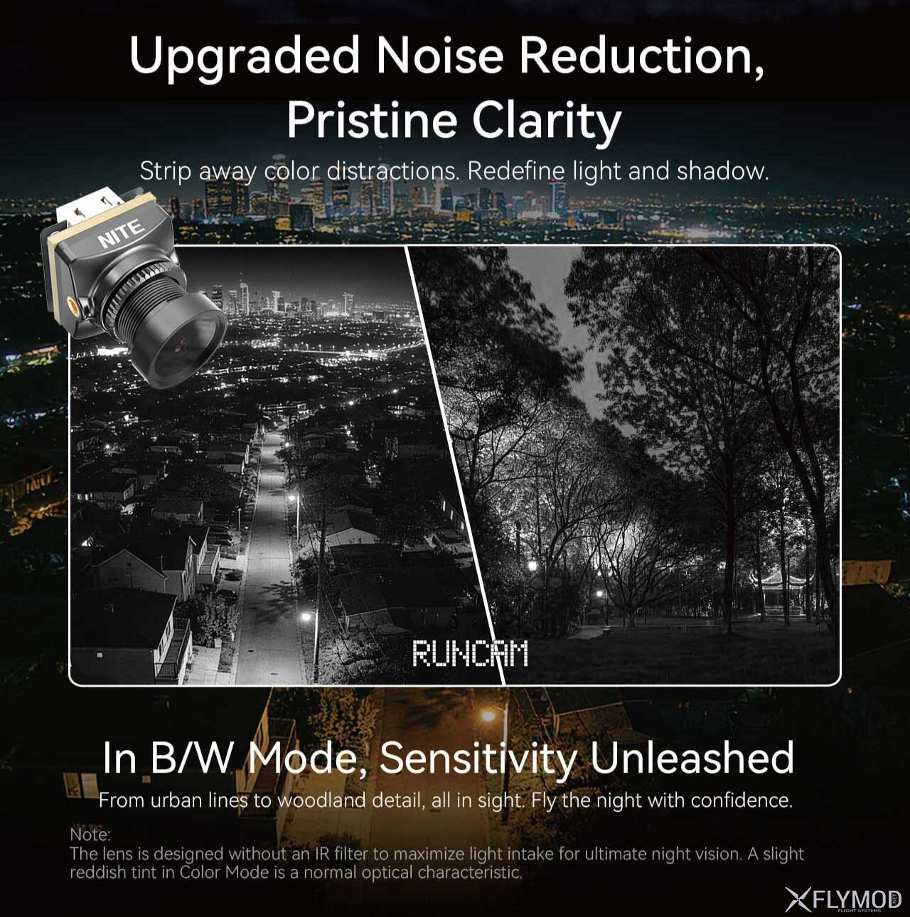 Камера RunCam Phoenix 2 Nite - це аналогова камера нічного бачення, призначена для знімання чітких і деталізованих кадрів за будь-яких умов освітлення. Висока чутливість 11390mV/Lux·sec спеціально призначена для польотів у темну пору доби або в зонах з низькою освітленістю. Лінза M12 з датчиком 1/2.8” без інфрачервоного фільтра забезпечує якісне зображення як вдень, так і вночі, а автоматичне перемикання між кольоровим та чорно-білим режимом допомагає гнучко пристосовуватися до різних рівнів освітлення. Горизонтальна роздільна здатність камери становить 1500TVL і вона підтримує співвідношення сторін 4:3 та 16:9, яке можна перемикати залежно від потреб користувача. Відеовихід працює зі стандартами PAL та NTSC, що сприяє сумісності з широким спектром пристроїв. Діапазон живлення 5-24V гарантує універсальність і стабільну роботу. Мініатюрні габарити та вага дозволяють легко встановлювати цю камеру у різні моделі. Налаштування можна зручно здійснити через OSD за допомогою пульта, що входить у комплект.