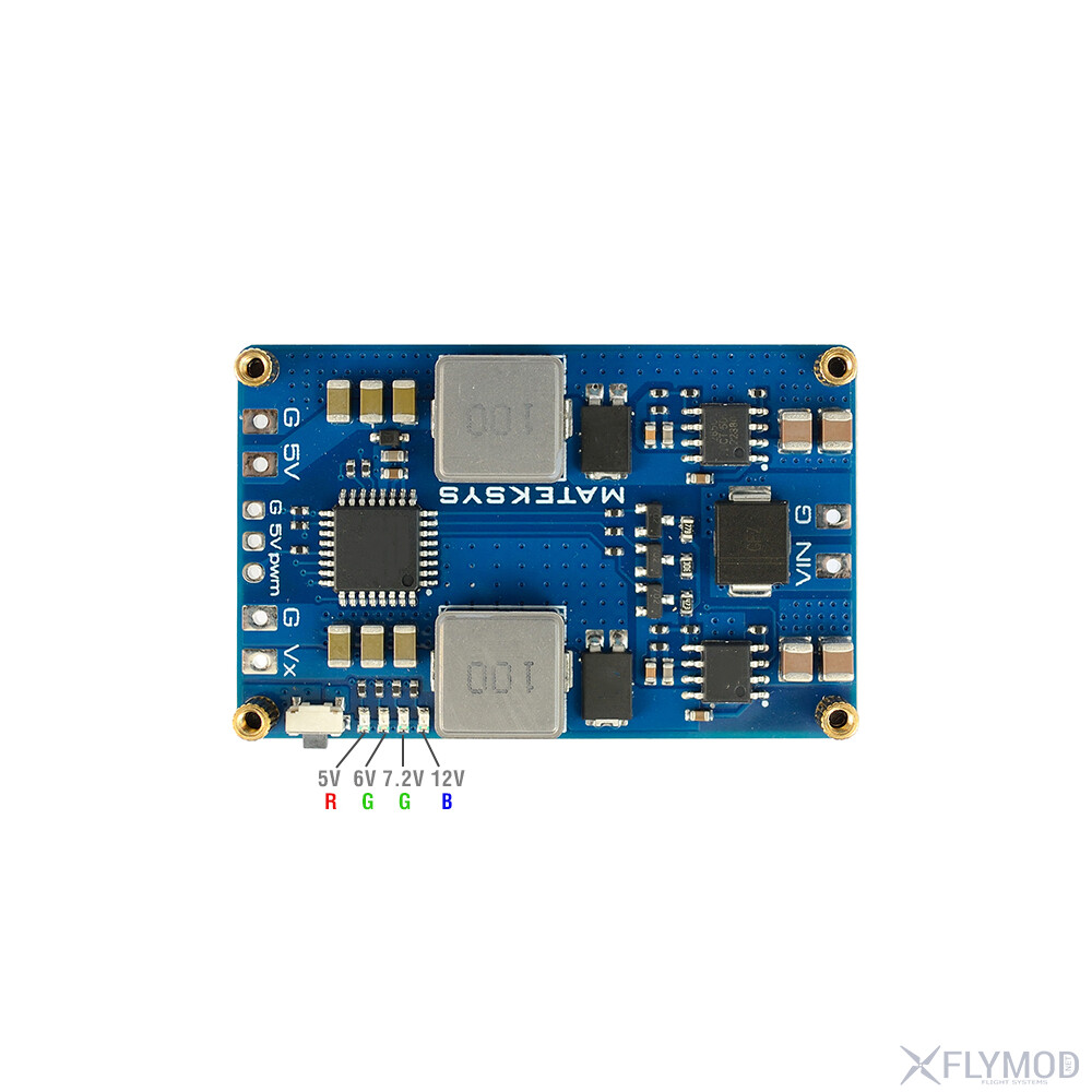 Модуль питания Matek PM12S-4A обеспечивает эффективное питание различных электронных компонентов радиоуправляемых моделей. Работает от входного напряжения 9-55V и 3-12S LiPo аккумуляторов с наличием TVS защиты. Оснащен двумя независимыми понижающими преобразователями напряжения и поддерживает непрерывный ток 4A и пиковый ток 5A на обоих выходах. Выход BEC 5V имеет фиксированное напряжение 5V, а выход BEC Vx имеет возможность переключения между напряжением 5V/6V/7.2V/12V и поддержку PWM-управления, предоставляя различные возможности подключения. Габариты 50*32*7мм и легкий вес 18г делают его удобным для установки.
